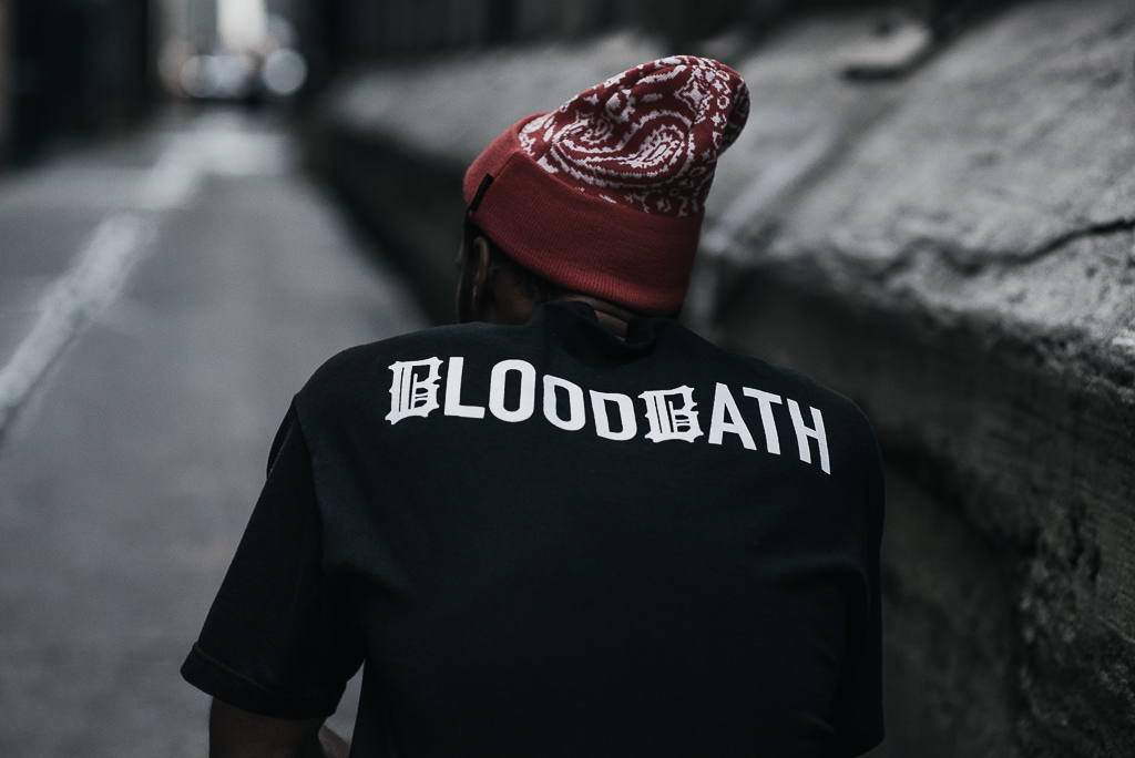 Adhering to their signature dark aesthetic, the collection spans through a full range of offerings: Peacoats, Coach Jackets, Fleeces, and their staple Graphic Tees, alongside a headwear selection of Snapbacks, Knitted Beanies, Bucket Caps. Shot by Archi Prudencio, the imagery reveals day-in-the-life moments of common creatives, all captured in Downtown Los Angeles. The collection is set to release Friday 12/13/13 at Bloodbath’s online shop.